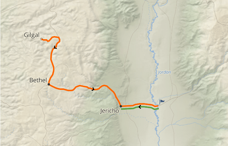 - Vs. 1, while the best known Gilgal was located between Jericho and the Jordan River (Joshua 4.19-20), it would seem that this Gilgal was located north of Bethel.