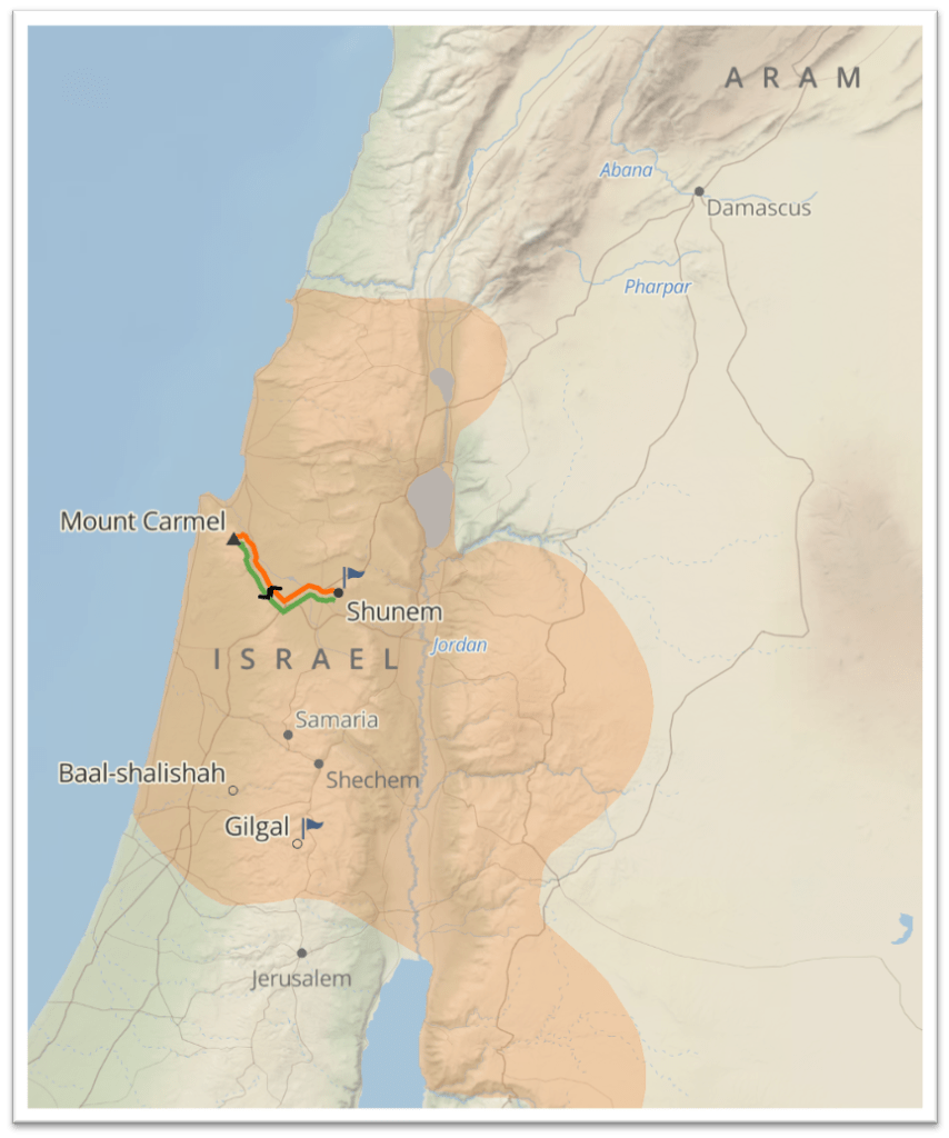 - Vs. 7, the Jordan River was ~40 miles from Samaria.
