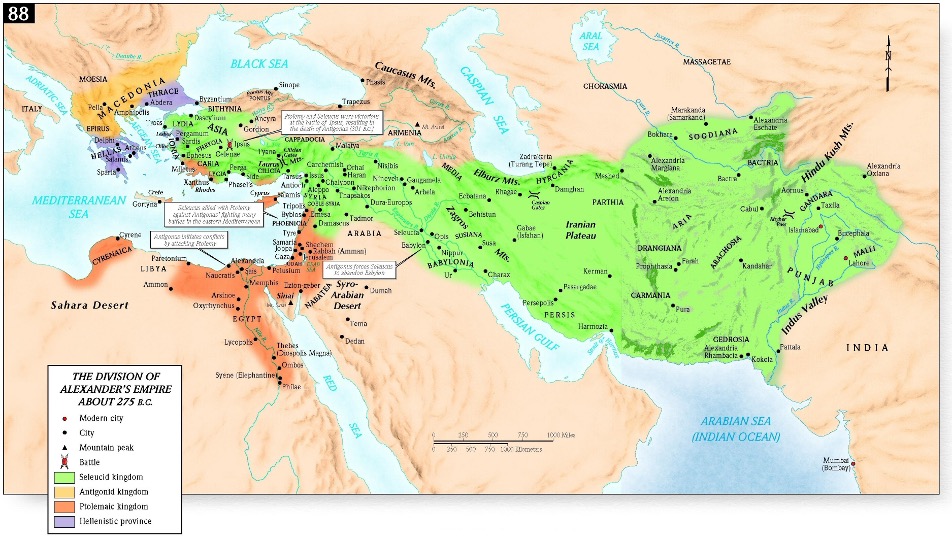 - Northern Syria, Mesopotamia, and regions to the east, ruled by Seleucus