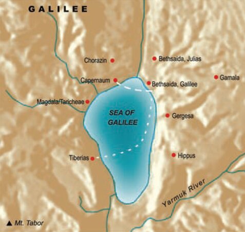 - Vs. 19: “The Sea of Galilee was at its widest point 7 mi (11.6 km) by 12 mi (20 km). So at this point the disciples were in about the middle of the lake” (NET Notes). Note that this occurred during the “4th watch of the night”, i.e. between 3-6AM (see Matthew 14.25).